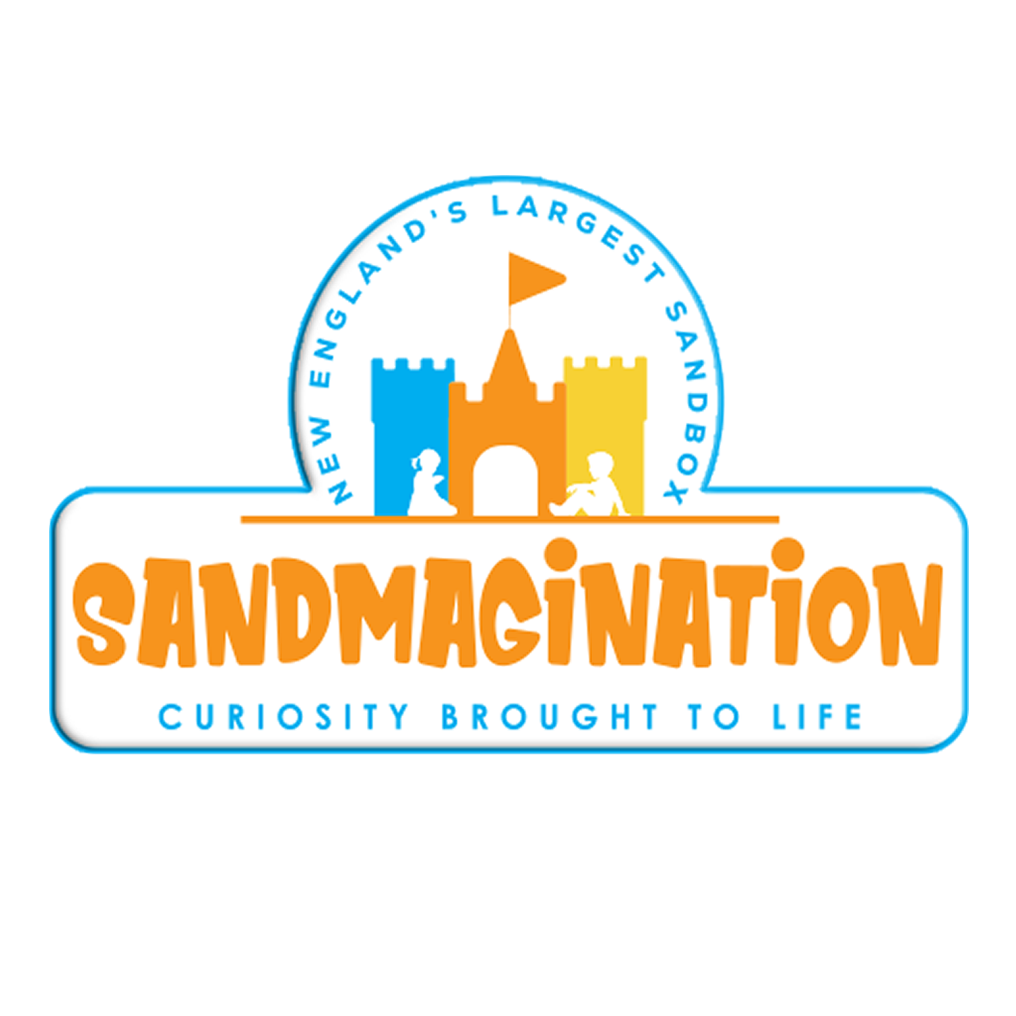 Sandmagination logo featuring a sandcastle with children playing and the tagline “Curiosity Brought to Life.”
